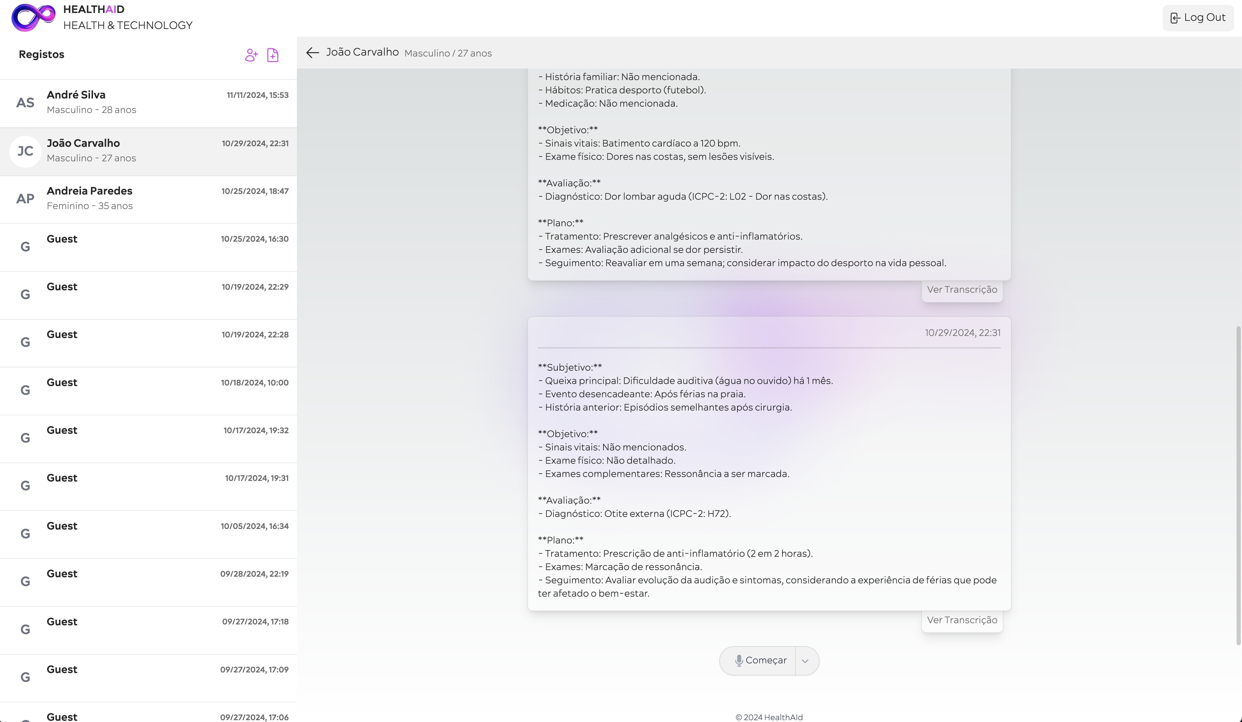 Na HealthAId, revolucionamos a saúde com tecnologia de IA, poupando tempo dos médicos, aumentando a eficiência dos serviços de saúde e reduzindo a burocracia.